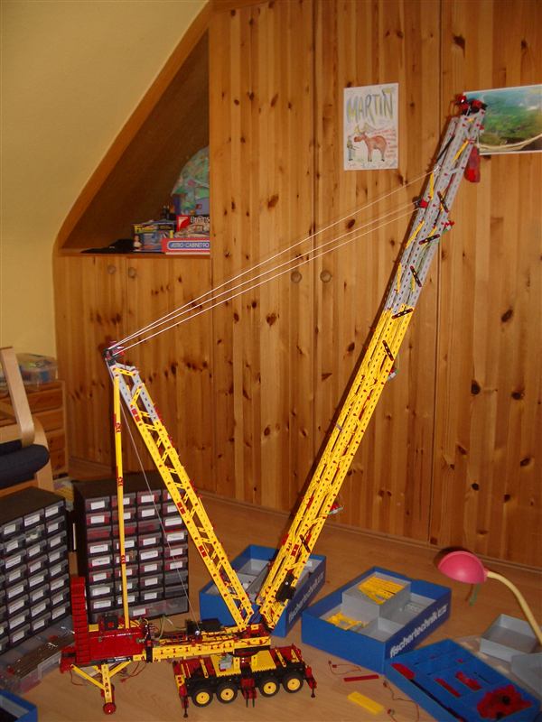Gesamtansicht meines Gittermastkrans, mit dem ich zwar lange nicht an Guilligan ran komme, aber immerhin… Maximale Höhe 1,55 m Länge des Hauptauslegers 1,35 m Länge des Nebenauslegers 80 cm Bauzeit ungefähr 30 Stunden