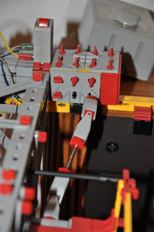 Laufrad angetrieben am oberen Kopfträger. Die Steuerung über Taster war noch sehr rudimentär, das wird beim nächsten Projekt auch anders gelöst.