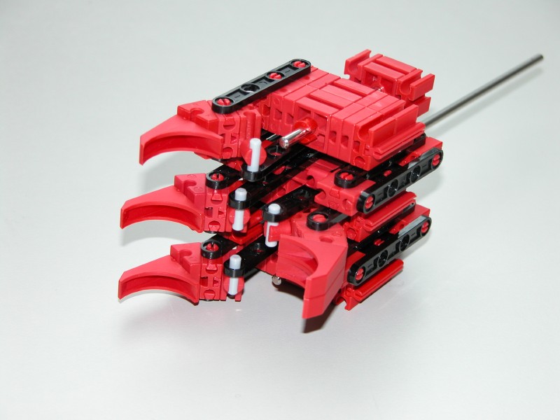 Ich habe hier versucht eine Hand mit Daumen und drei Fingern zu bauen. Der mittlere Finger läuft zusammen mit dem Daumen. Die beiden äußeren werden separat gesteuert. Wie kann ich noch nicht sagen …..