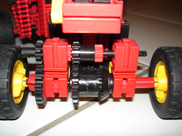 Hier die nachträglich eingebaute Differenzialsperre der Vorderachse. Hinten ist auch noch eine drin. Schöner wäre es, wenn sie im Fahrbetrieb zuschaltbar wäre (mach ich dann beim nächsten mal…). Man kann sich gut vorstellen, wie schwer die Lenkung z.B. auf einem Glastisch geht, wenn beide Sperren drin sind, oder? Im Stand geht gar nix… ;o)