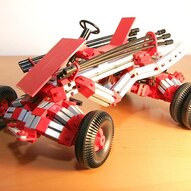 ein Fahrzeug mit drehbaren Hinterradaufhängungen und geteiltem, gefederten Rahmen. aufgrund der vielen Bewegungsmöglichkeiten der einzelnen Komponenten zueinander entsteht bei aufeinanderfolgenden gegensätzlichen Lenkbewegungen der eindruck, daß sich das Fahrzeug richtiggehend in die kurven schmiegt. was auf statischen Fotos leider nicht so gut darstellbar ist…