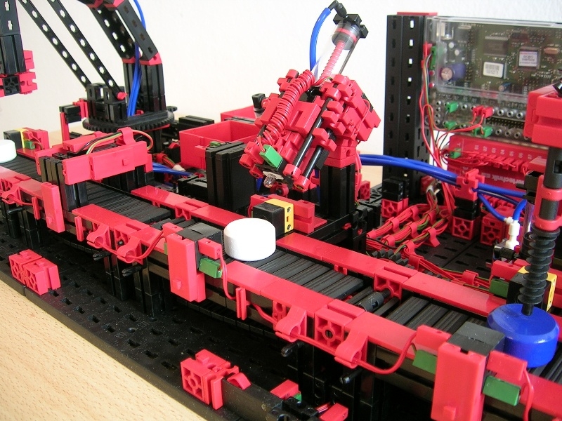 Diese wird mit einem Zylinder mit Rückholfeder über ein Magnetventil angesteuert und fährt den Schweißkopf zum Werkstück.