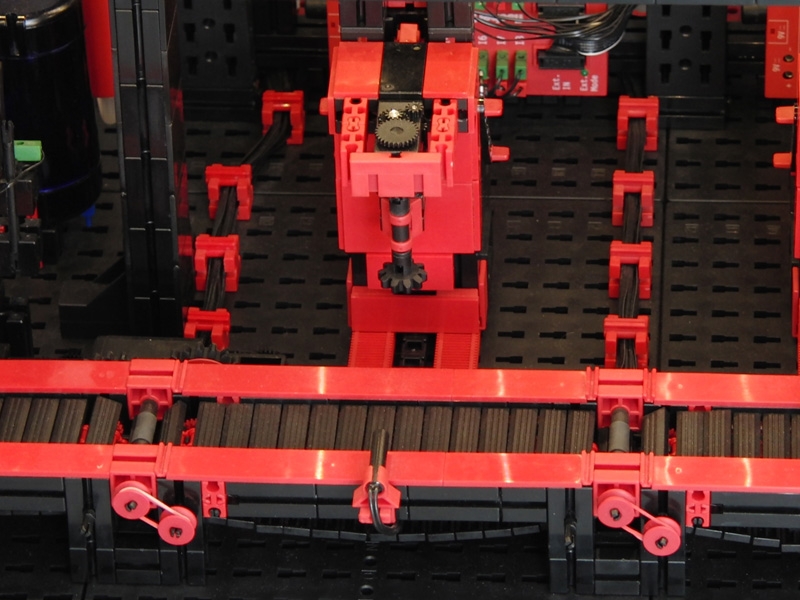 An der Frässtation dient das Förderband als Maschinentisch, die Fräse selbst hat zwei bewegliche Achsen und einen separaten Spindelmotor.