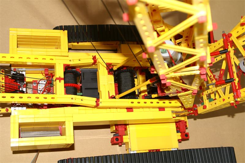 - die feste Umlenkrollen und Doppelte Seilwinde des Auslegerverstellwerk