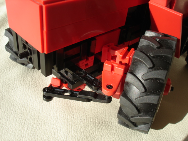 Detailansicht Vorderachse, maximaler Lenkeinschlag.