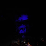 Eine Bühne die mit Scheinwerfern und co ausgestattet ist.