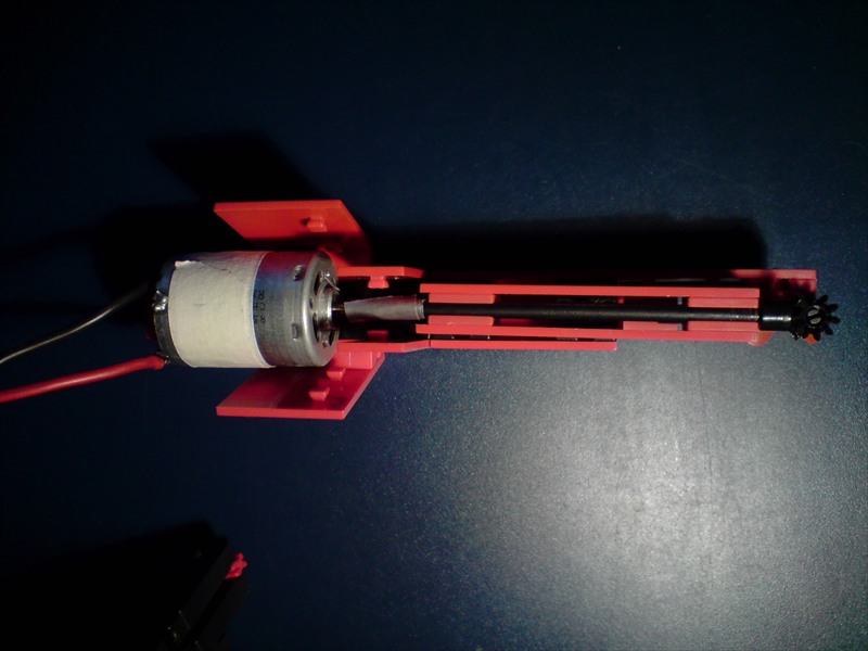 Als Antriebsmotor dient ein Bürstenmotror Marke Graupner, der Baugröße 360. Die Antriebswelle des Motors habe ich ganz einfach mit Hilfe von Panzertape an einer Fischertechnik Achse befestigt.