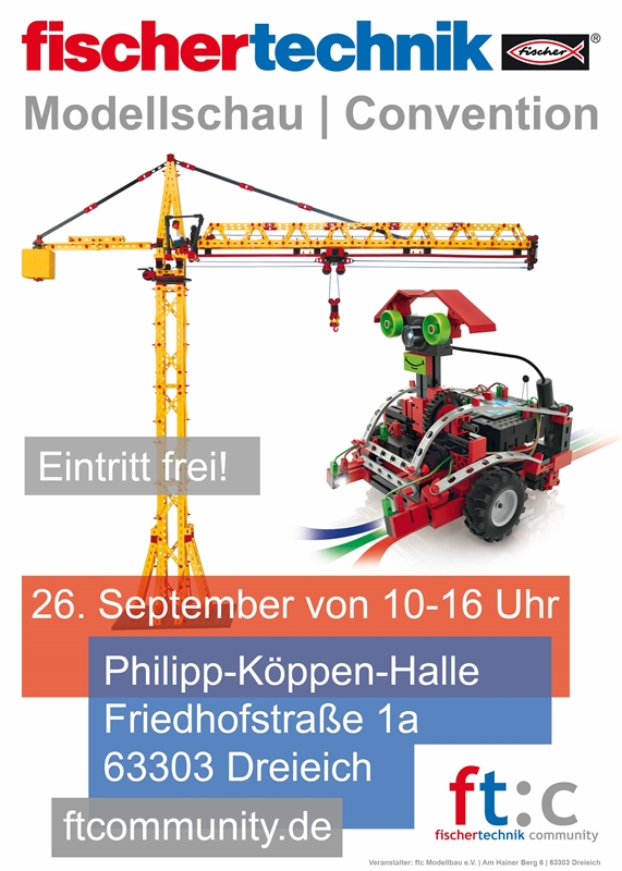 So sieht das Plakat zur Convention 2015 aus. Größe: DIN-A3 Zum Selberdrucken und Aufhängen: Download volle Auflösung: http://www.ftcommunity.de/data/downloads/conventionplakate/plakatconventiongross.pdf Download reduzierte Qualität: http://www.ftcommunity.de/data/downloads/conventionplakate/plakatconventionklein.pdf